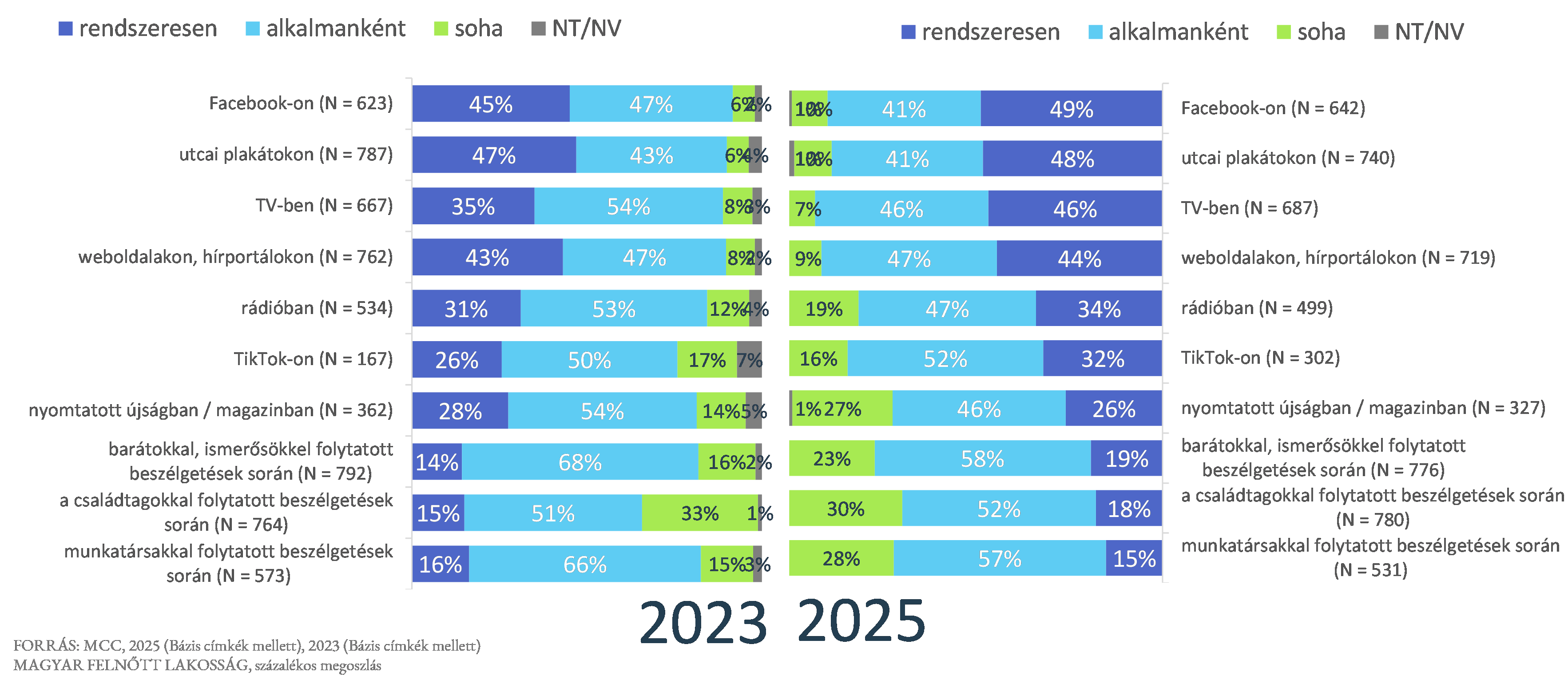 Az MCC-ben működő Szociológia Műhely és Politikatudományi Műhely közös, politikai kultúrával foglalkozó kutatása arra kereste a választ, hogy a magyarok mennyire érdeklődnek a közélet és a politika iránt, és az ilyen ügyekkel kapcsolatban honnan tájékozódnak. Felmérésünk szerint az emberek 64 százalékát foglalkoztatják közéleti, politikai kérdések. Ez utóbbi információk forrását leginkább a személyes kapcsolatokon alapuló beszélgetések adják, de az emberek az online tartalmak fogyasztása közben is gyakran találkoznak politikával és közélettel. A tájékozódási források sorrendje 2023-hoz képest nem változott jelentősen.